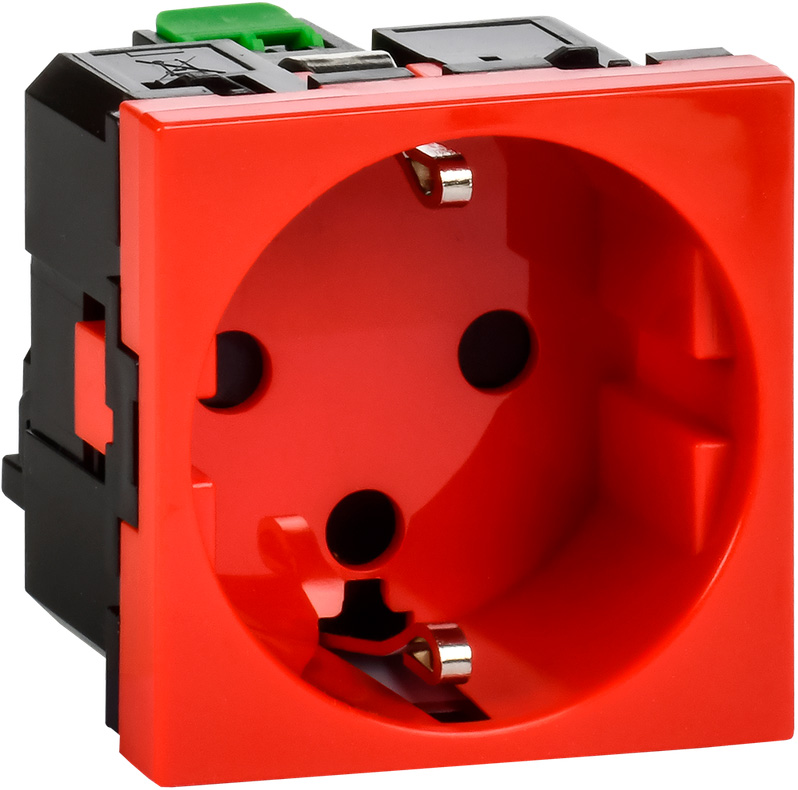 Розетка Mosaic, DLP, DLP floor, DLP IP 44, DLP IP 40, без шторок, с заземлением, одинарная, винтовые клеммы, цвет - красный