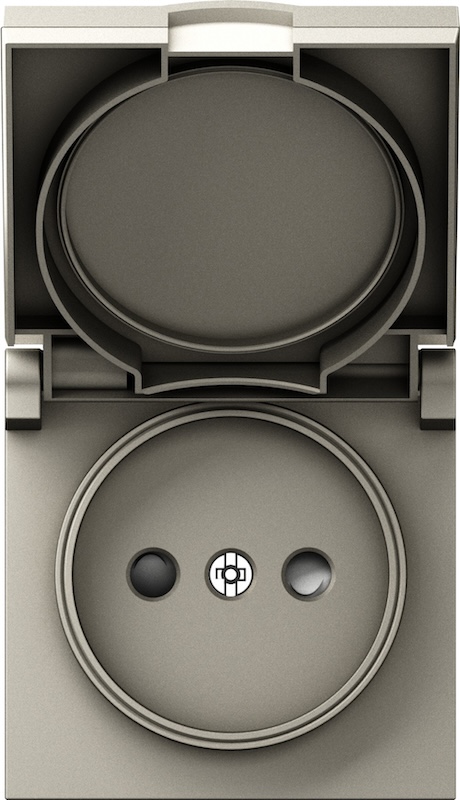 Механизм розетки A07 NATURAL, A07, A07 WAVE, S08, со шторками, с крышкой, без заземления, одинарная, винтовые клеммы