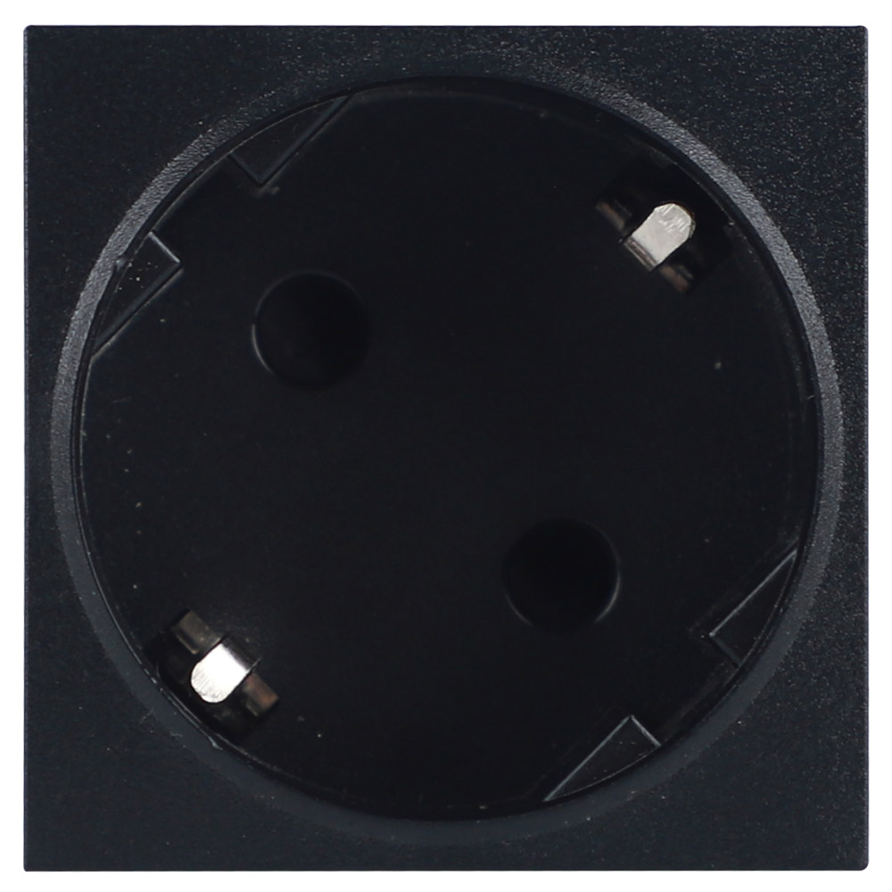Розетка Лючки DDSB, Лючки DFB, со шторками, с заземлением, одинарная, безвинтовые клеммы, цвет - черный матовый