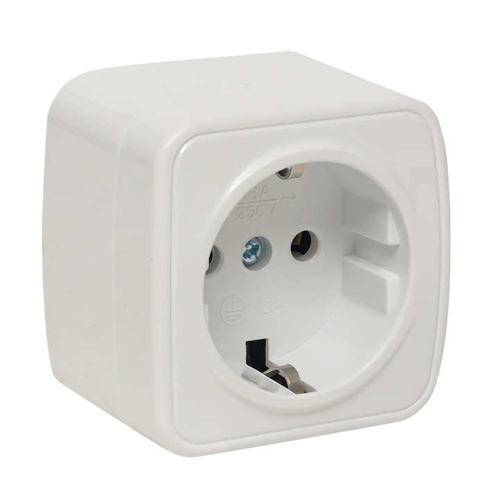 Розетка Минск, без шторок, с заземлением, одинарная, безвинтовые клеммы, цвет - белый