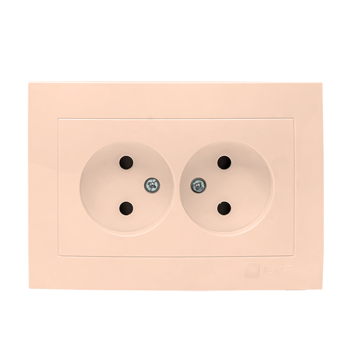 Валенсия, со шторками, с заземлением, двойная, винтовые клеммы, цвет - кремовый