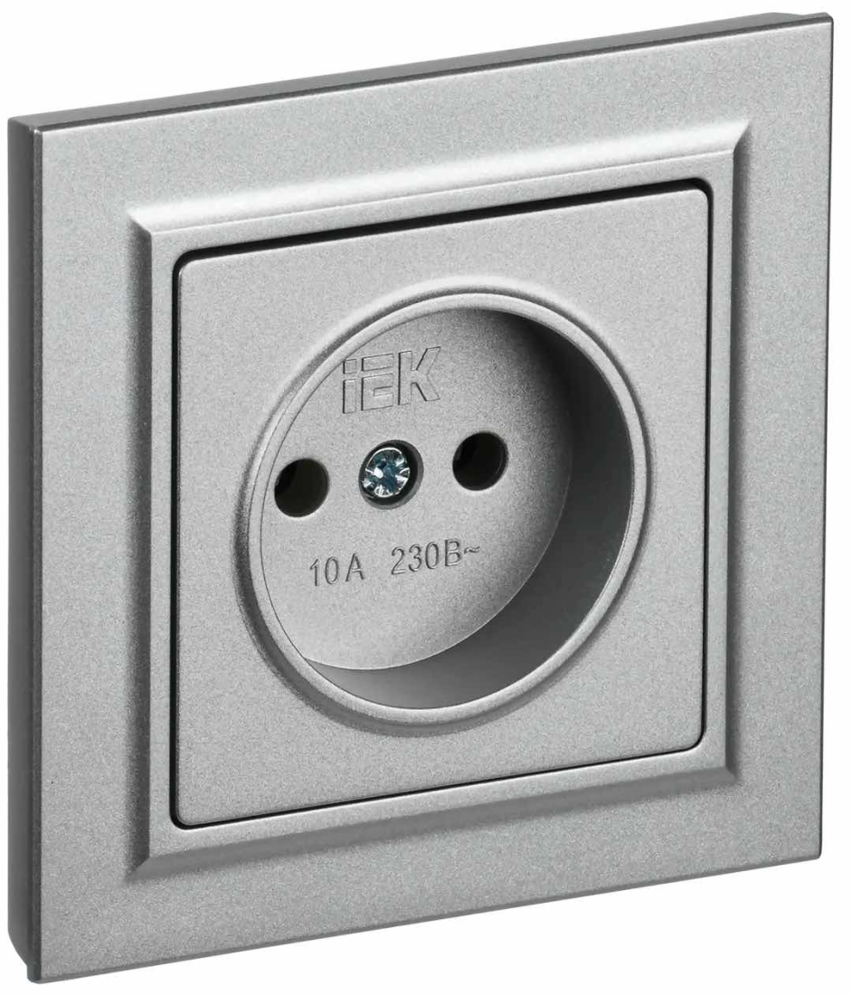 Розетка с рамкой BRITE, без шторок, без заземления, одинарная, винтовые клеммы, цвет - алюминий