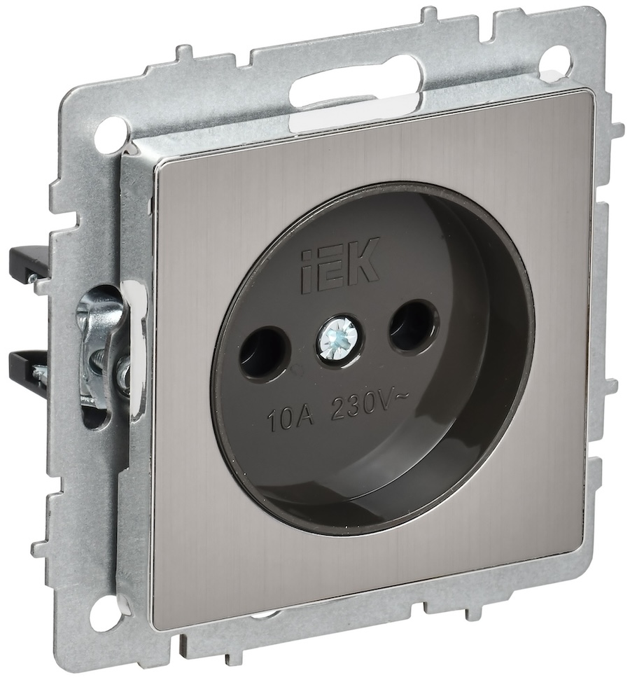BRITE, без шторок, с заземлением, одинарная, винтовые клеммы, цвет - никель