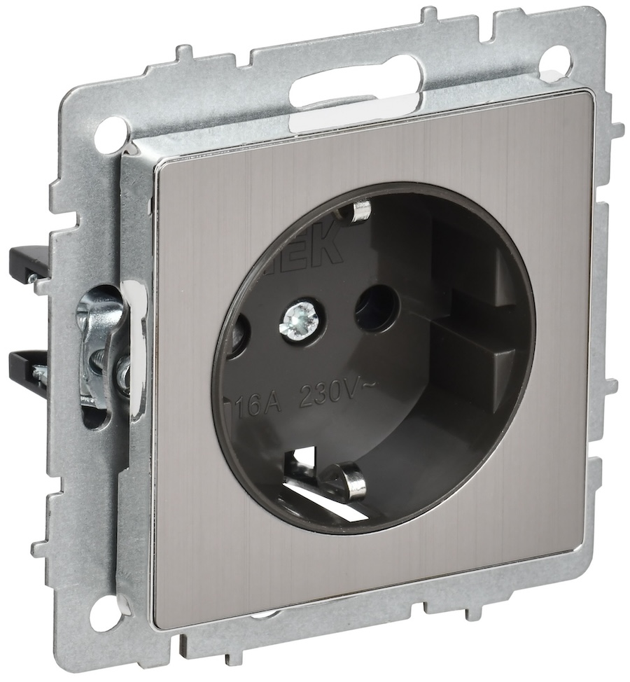 BRITE, со шторками, с заземлением, одинарная, винтовые клеммы, цвет - никель