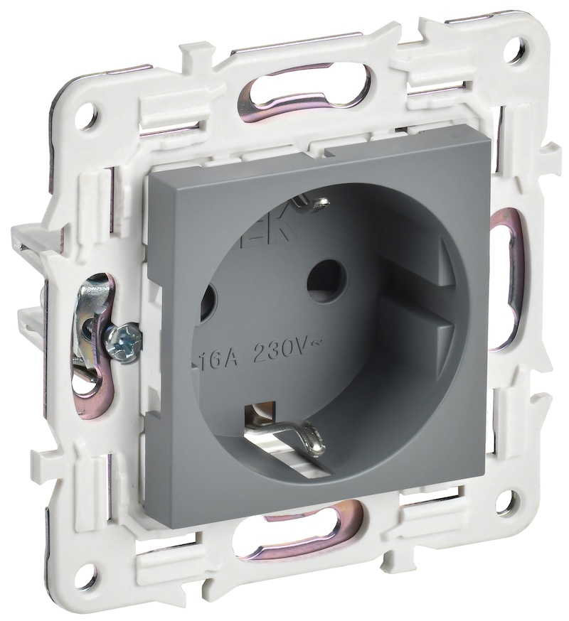 Skandy, без шторок, с заземлением, одинарная, винтовые клеммы, цвет - серый