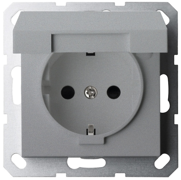 Розетка G series, со шторками, с крышкой, с заземлением, одинарная, цвет - алюминий
