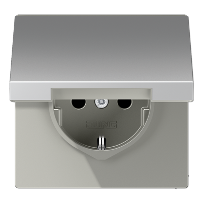 Розетка LS 990, LS 1912, LS plus, LS ZERO, LS-design, FD-design, без шторок, с крышкой, с заземлением, одинарная, безвинтовые клеммы, цвет - алюминий
