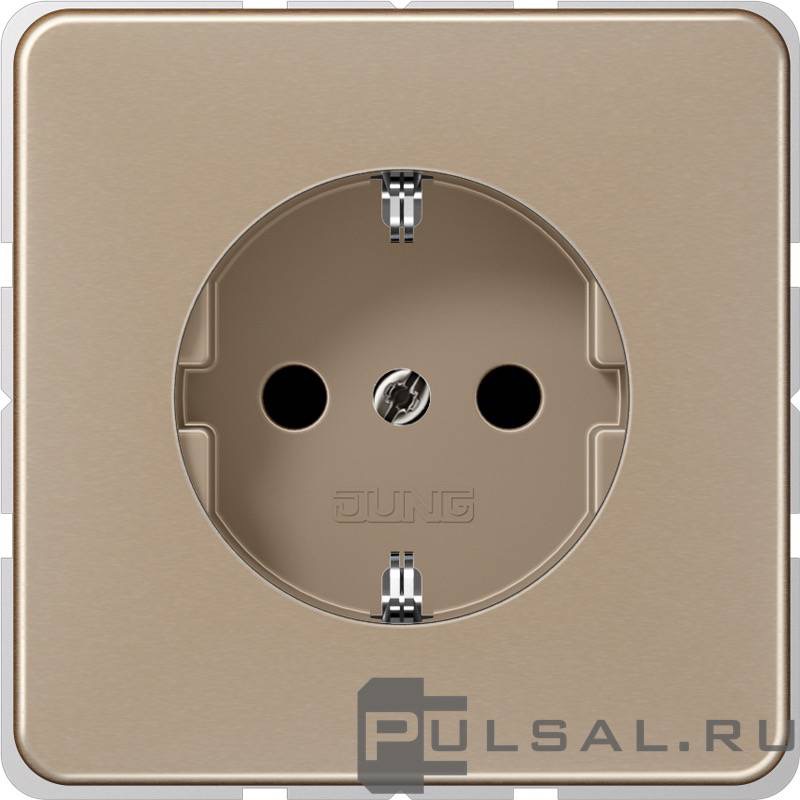 Розетка CD 500, со шторками, с заземлением, одинарная, безвинтовые клеммы, цвет - золотая бронза