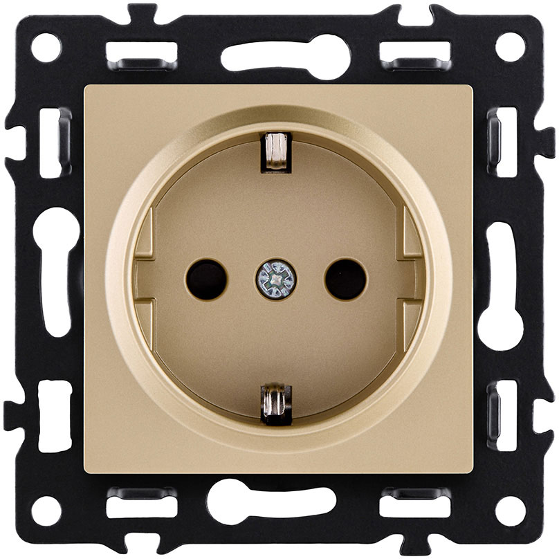 Розетка электрическая Asthetik, с заземлением, одинарная, винтовые клеммы, цвет - золотой