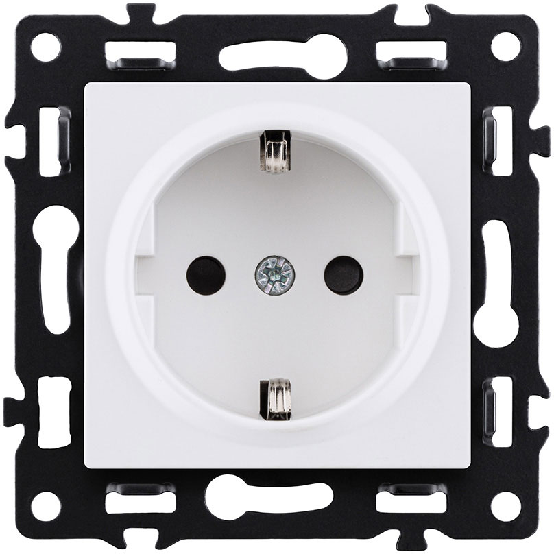 Розетка электрическая Asthetik, с заземлением, одинарная, винтовые клеммы, цвет - белый