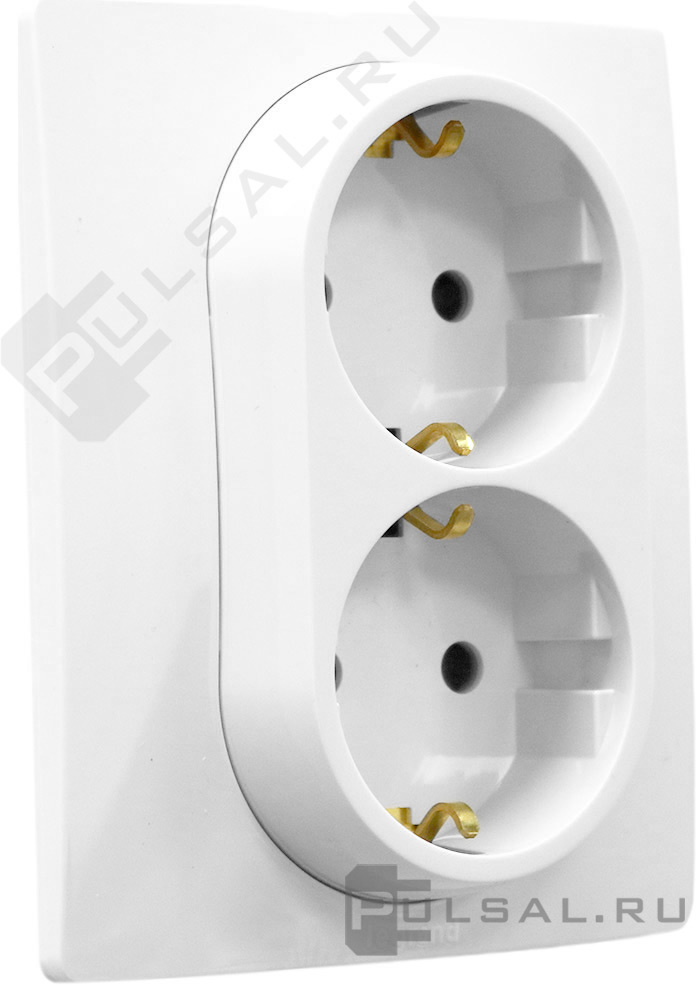 Розетка Etika, без шторок, с заземлением, двойная, винтовые клеммы, цвет - белый