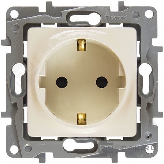 Розетка Etika, без шторок, с заземлением, одинарная, винтовые клеммы, цвет - слоновая кость