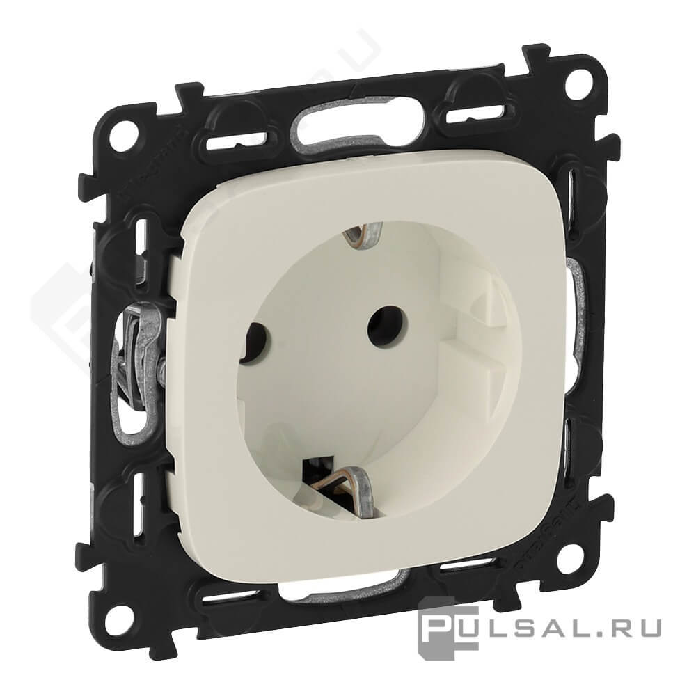 Розетка Valena Allure, без шторок, с заземлением, одинарная, безвинтовые клеммы, цвет - слоновая кость