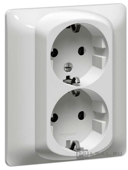 Розетка Galea Life, со шторками, с заземлением, двойная, винтовые клеммы, цвет - белый