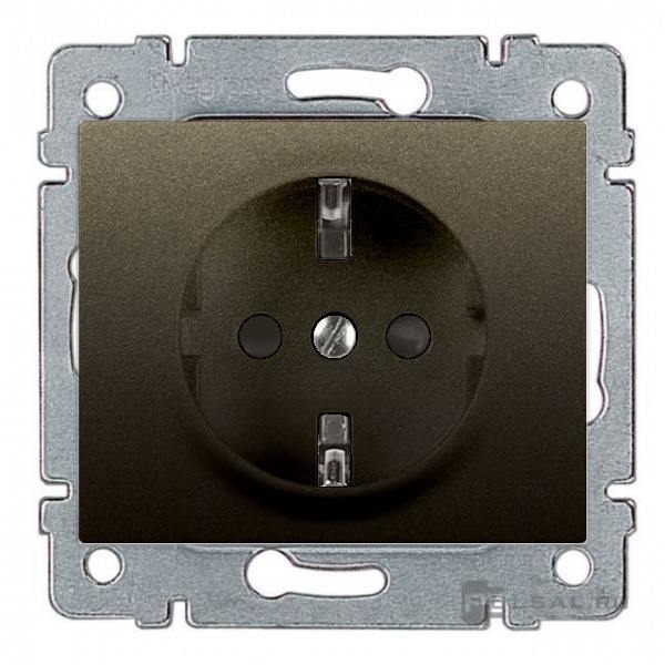 Розетка Galea Life, без шторок, с заземлением, одинарная, безвинтовые клеммы, цвет - бронза темная