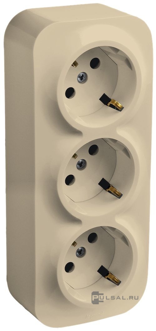 Quteo, со шторками, с заземлением, тройная, винтовые клеммы, цвет - слоновая кость