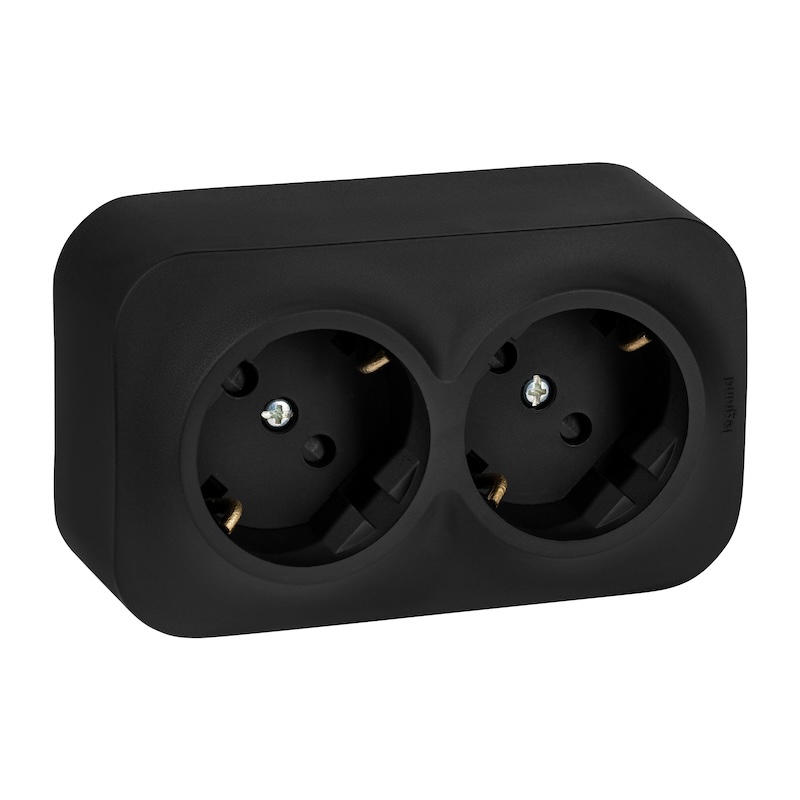 Quteo, без шторок, с заземлением, двойная, винтовые клеммы, цвет - матовый черный