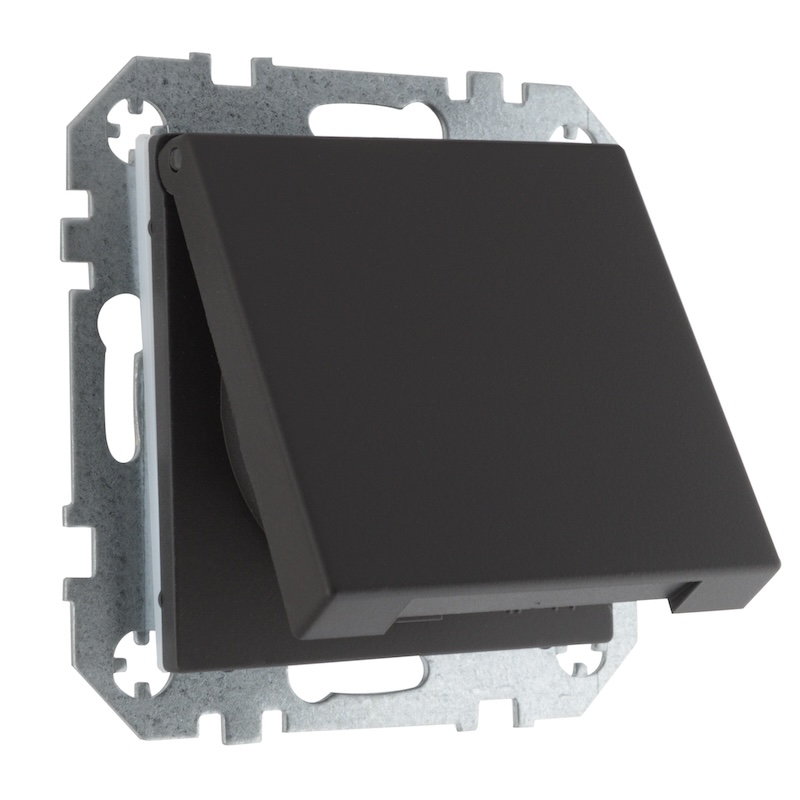 Розетка Epsilon, Retro Liregus, со шторками, с крышкой, с заземлением, одинарная, безвинтовые клеммы, цвет - черно-коричневый матовый