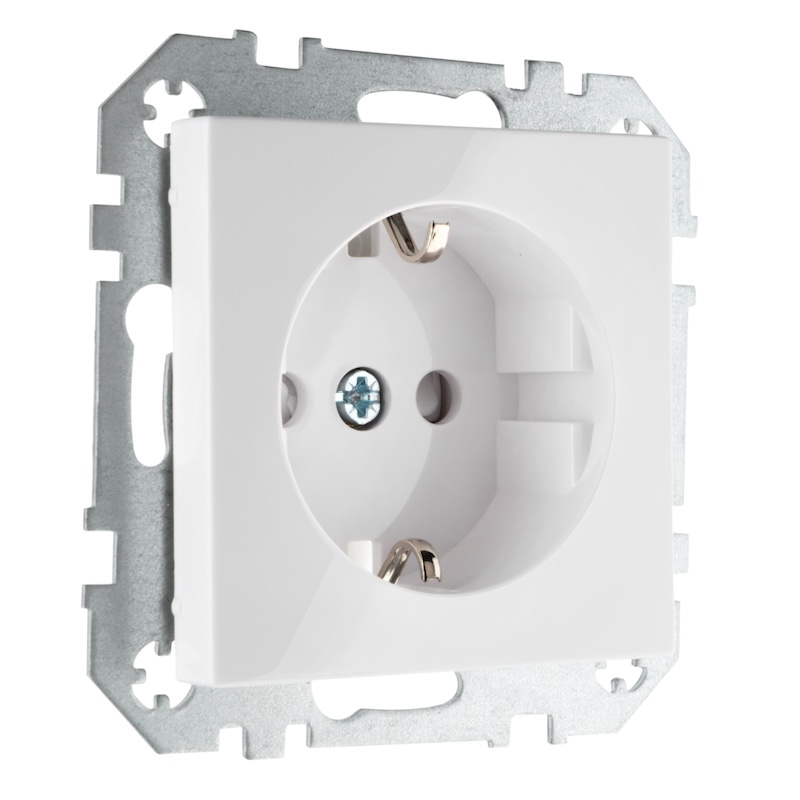 Это обычная электрическая розетка, в конструкции которой предусмотрен третий, заземляющий контакт.
