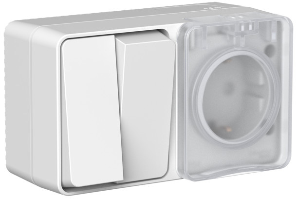 Блок, розетка + выключатель Atlas Design Profi 54, со шторками, с крышкой, с заземлением, одинарная, винтовые клеммы, цвет - серый