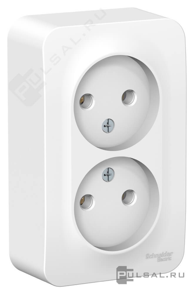 Розетка с изолирующей пластиной Blanca, без шторок, с заземлением, двойная, цвет - белый