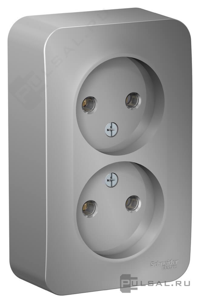 Розетка с рамкой Blanca, без шторок, с заземлением, двойная, цвет - алюминий
