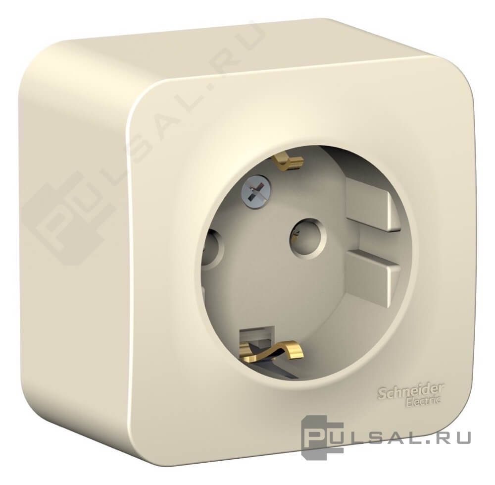 Розетка с изолирующей пластиной Blanca, без шторок, с заземлением, одинарная, цвет - молочный