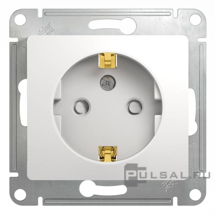 Розетка Glossa, со шторками, с заземлением, одинарная, винтовые клеммы, цвет - белый