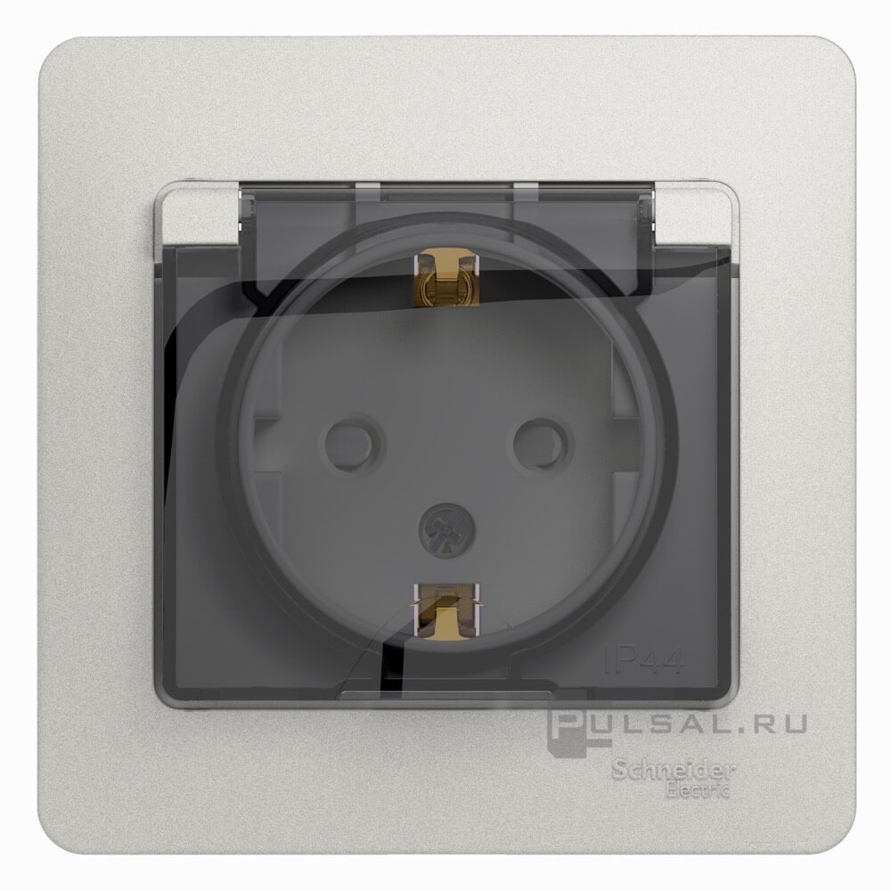 Розетка с рамкой Glossa, со шторками, с крышкой, с заземлением, одинарная, винтовые клеммы, цвет - перламутр