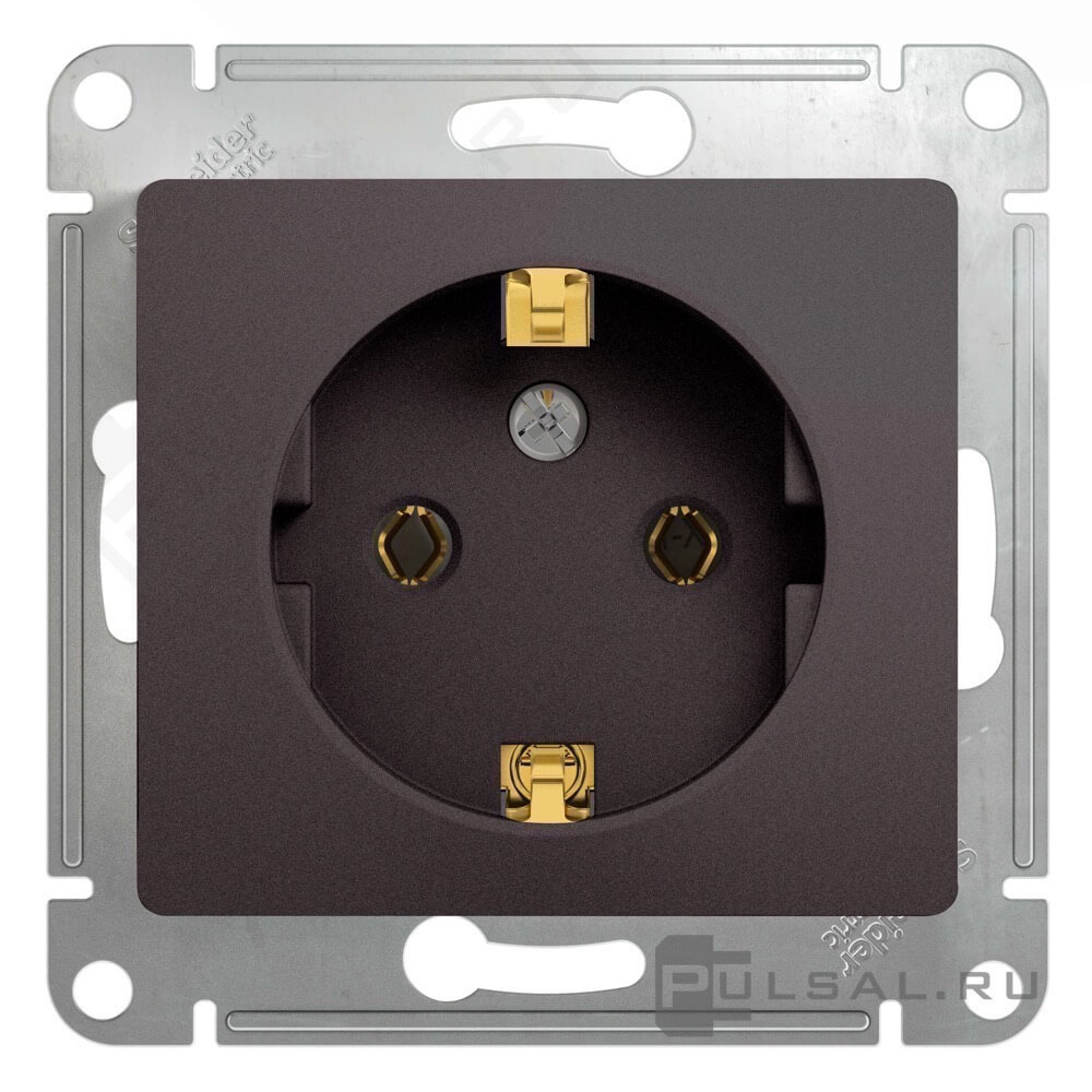 Розетка Glossa, без шторок, с заземлением, одинарная, винтовые клеммы, цвет - графит