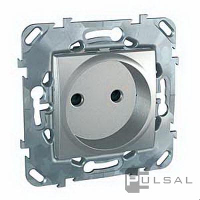 Розетка Unica Quadro, Unica Top, Unica Class, со шторками, без заземления, одинарная, винтовые клеммы, цвет - алюминий
