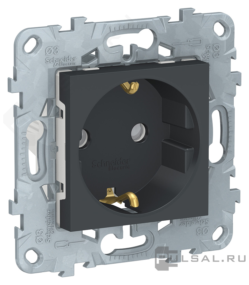 Розетка Unica New Pure, Unica New Studio, со шторками, с заземлением, одинарная, винтовые клеммы, цвет - антрацит