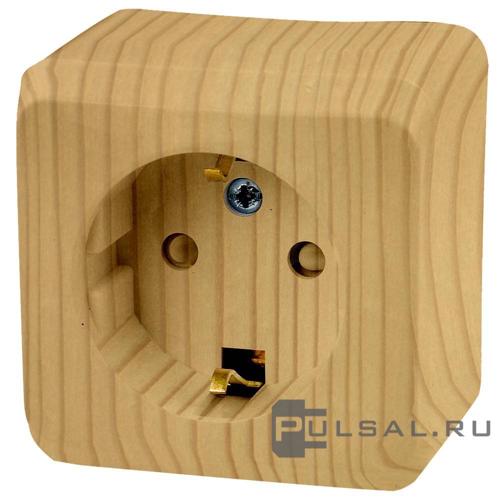 Розетка Этюд, со шторками, с заземлением, одинарная, винтовые клеммы, цвет - сосна
