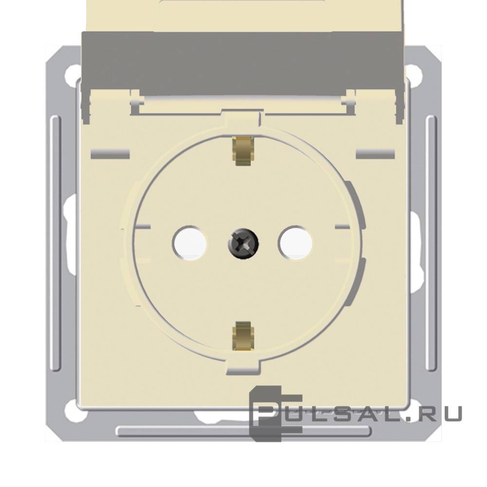W59aqua, со шторками, с заземлением, одинарная, винтовые клеммы, цвет - слоновая кость