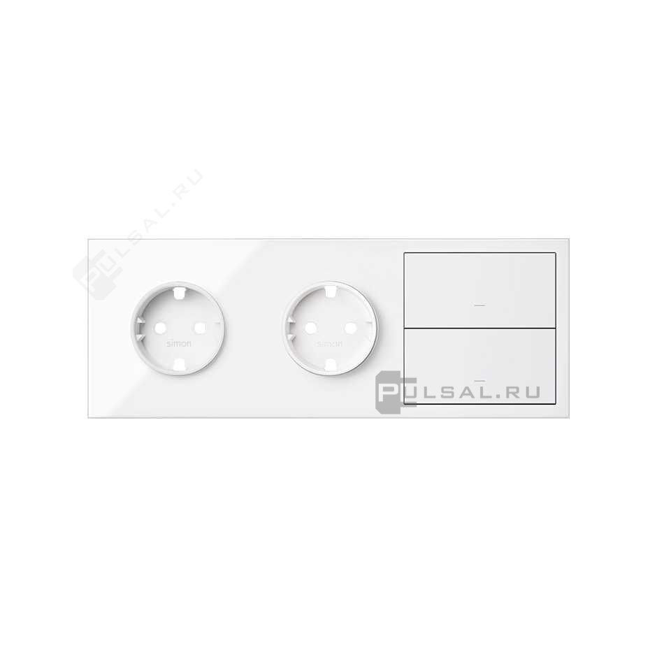 Кит 3 поста, фронт. Накладка на 2 розетки Schuko + 2 клавиши выключателей цвета белый глянец S100