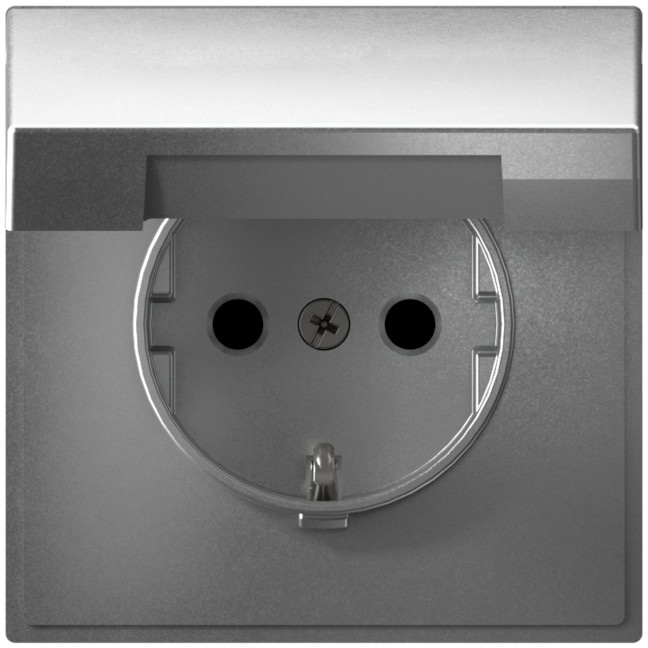 Розетка ArtGallery, ArtGallery Pure, со шторками, с крышкой, с заземлением, одинарная, винтовые клеммы, цвет - алюминий