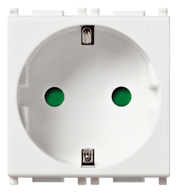 Розетка с плоской панелью Plana, Plana Up, со шторками, с заземлением, одинарная, винтовые клеммы, цвет - белый