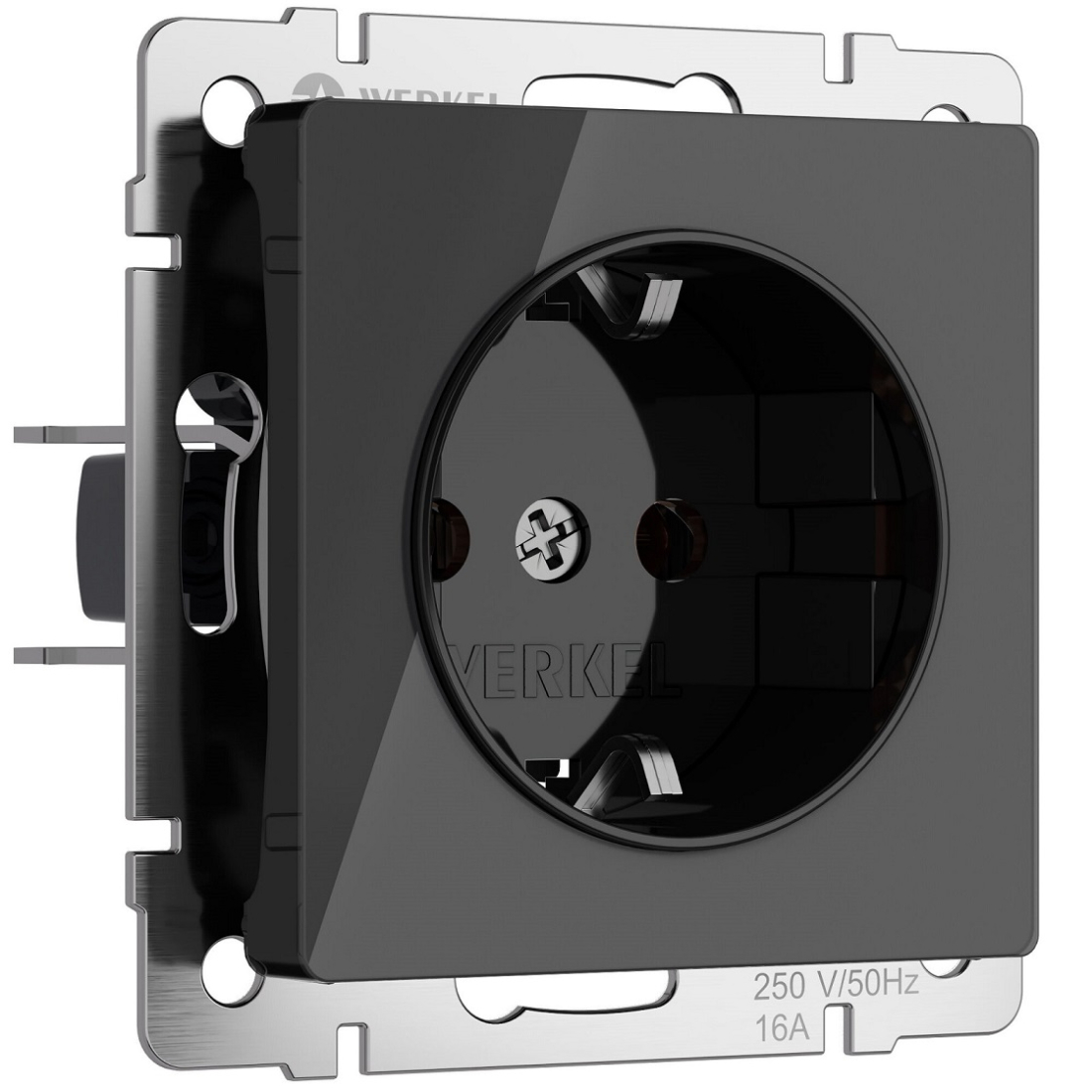Розетка Alumax, Split, Slab, Senso, Baguette, Acrylic, Platinum, Elite, Snabb, Stream, Flock, Stark, Fiore, Favorit, Diamant, Aluminium, Antik, Metallic, без шторок, с заземлением, одинарная, винтовые клеммы, цвет - черный акрил