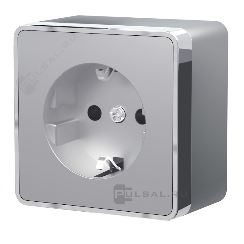 Gallant, со шторками, с крышкой, с заземлением, одинарная, винтовые клеммы, цвет - серебряный