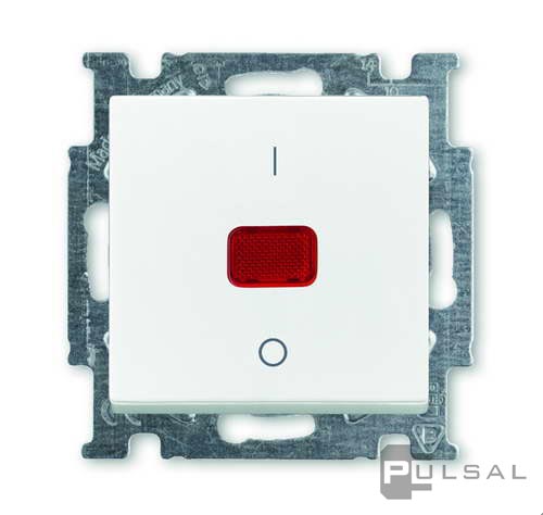 Переключатель с N-клеммой Basic 55, одноклавишный, с индикацией, цвет - альпийский белый