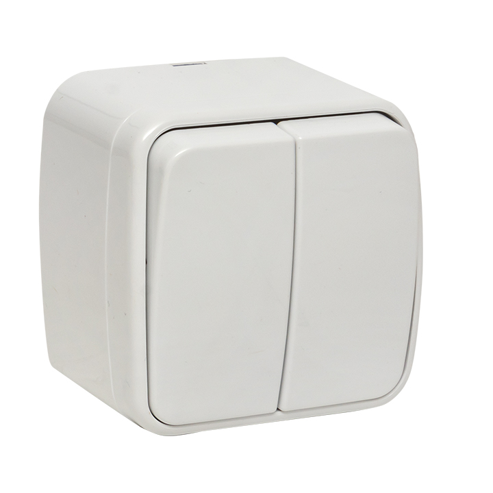 Выключатель Минск, двухклавишный, без подсветки, цвет - белый