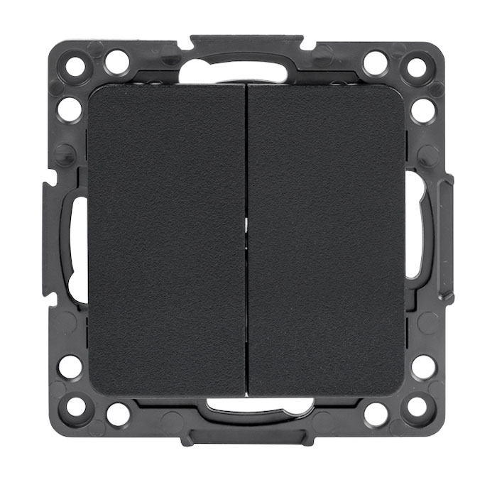 Переключатель Стокгольм, двухклавишный, без подсветки, цвет - черный