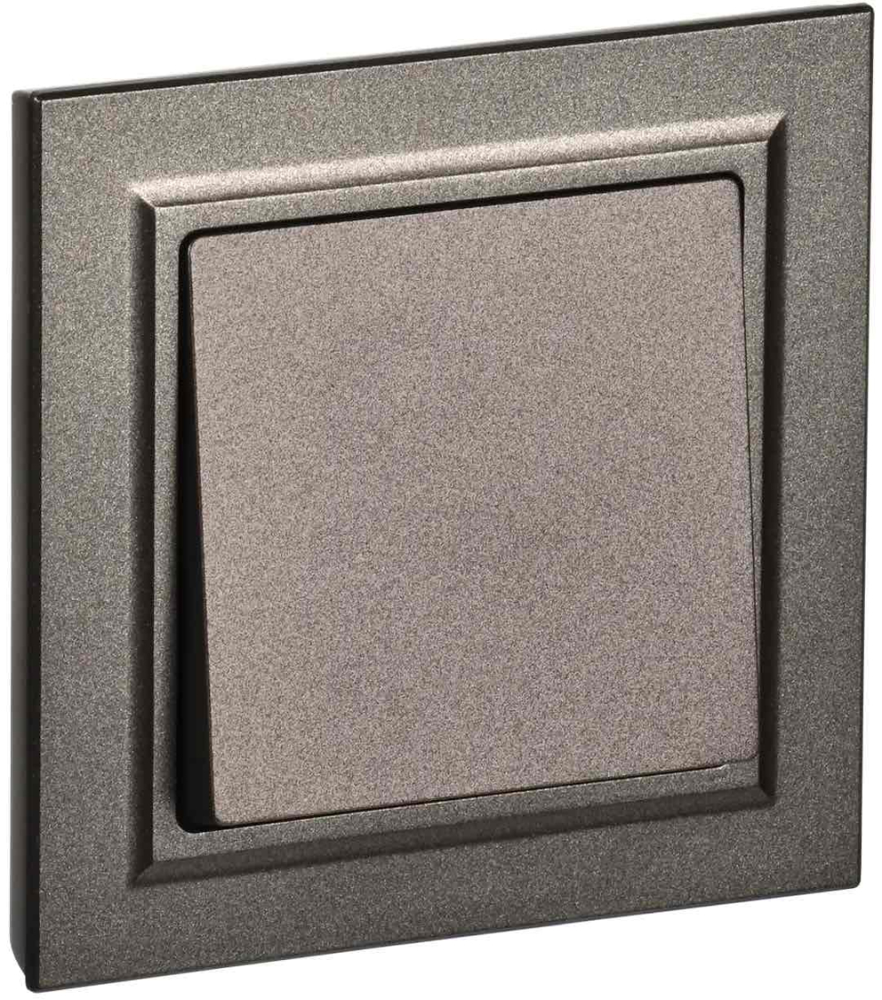 Выключатель с рамкой BRITE, одноклавишный, без подсветки, цвет - темная бронза