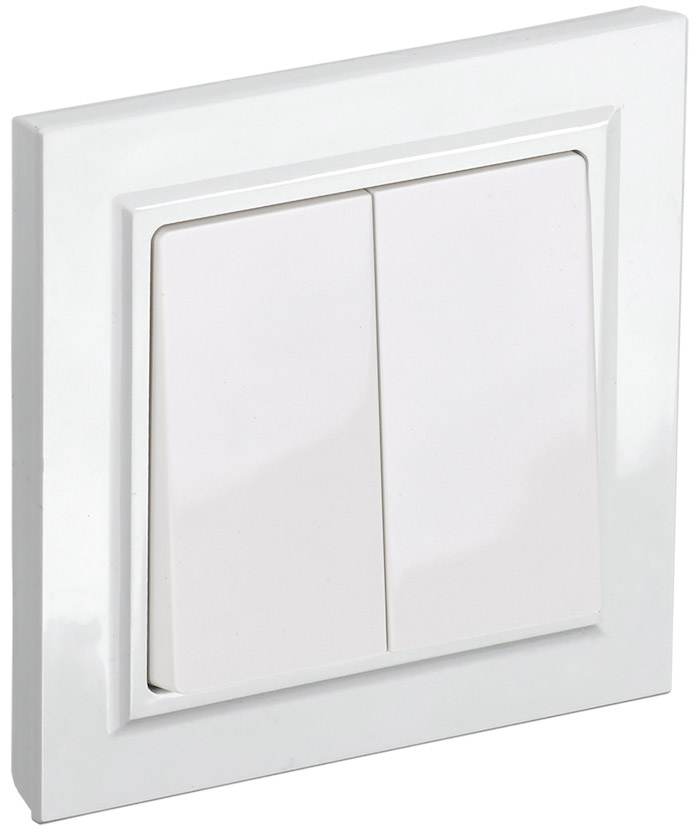 Выключатель с рамкой BRITE, двухклавишный, без подсветки, цвет - белый