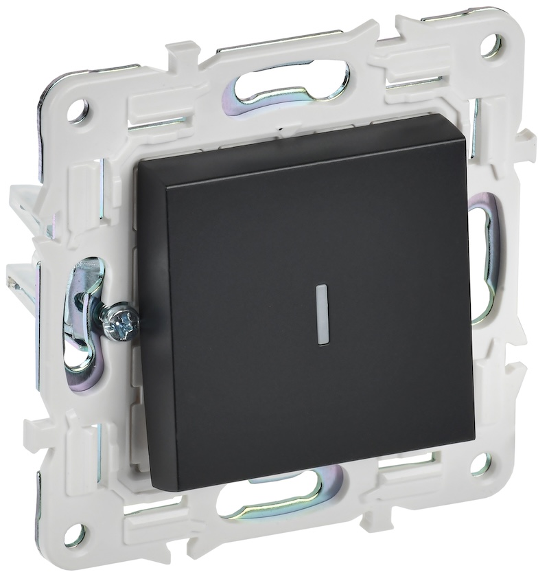 Выключатель Skandy, одноклавишный, с подсветкой, цвет - черный