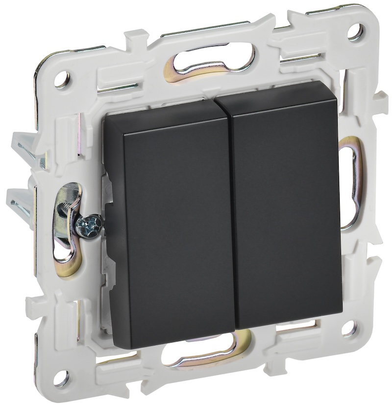Переключатель Skandy, двухклавишный, без подсветки, цвет - черный
