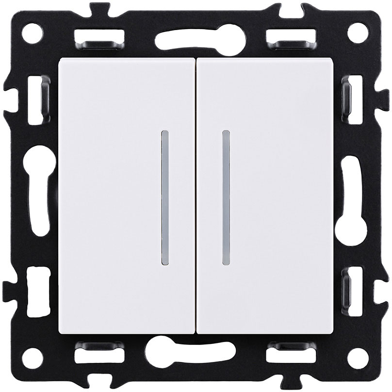 Выключатель Asthetik, двухклавишный, с подсветкой, цвет - белый