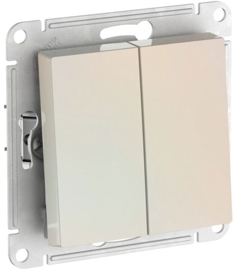 Выключатель (безвинтовые клеммы) Atlas Design Antique, AtlasDesign Air, Atlas Design, двухклавишный, без подсветки, цвет - жемчуг