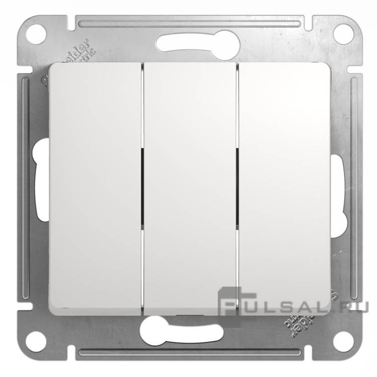 Выключатель Glossa, трехклавишный, без подсветки, цвет - белый