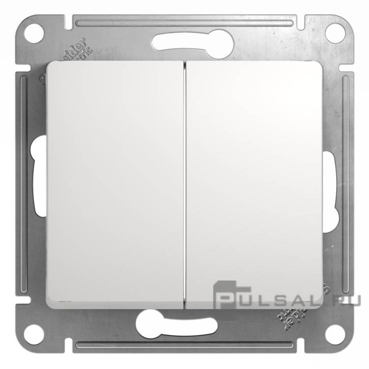 Переключатель Glossa, двухклавишный, без подсветки, цвет - белый